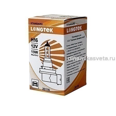 Автолампа LONGTEK 20116 H16 12V 19W PGJ19-3 Standard (К1/10)