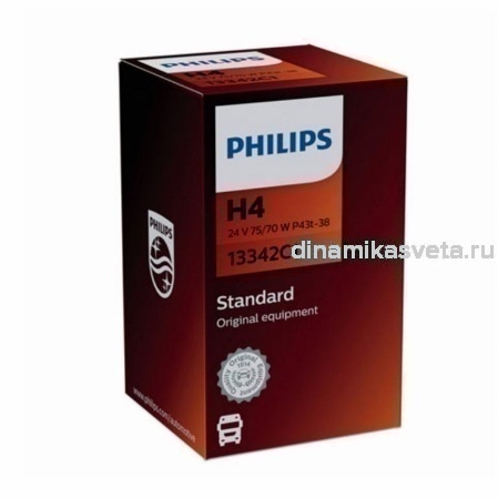 Автолампа PHILIPS 13342C1 H4 24V 75/70W P43t Standard (К1/10/100) (СНЯТО С ПРОИЗВОДСТВА)