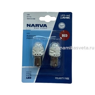 Автолампа LED NARVA 18151B2 P21W(1156) 12V 1,73W BA15s Range Power LED (КРАСНЫЙ) (Б2/20)