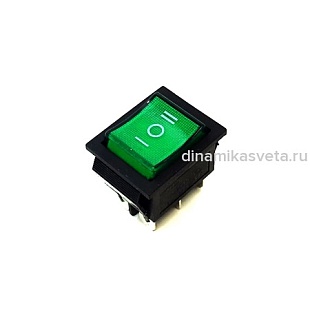 Переключатель клавишный прямоугольный 1 кл. 125-250V 16-20A/ Зеленый/DP3203G