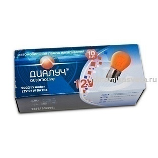 Автолампа ДИАЛУЧ 92221Y PY21W(1156) 12V 21W BA15s Amber (ЯНТАРНЫЙ) (К10/1000)