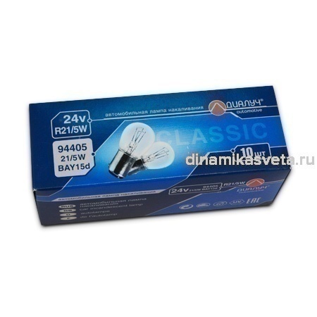 Автолампа ДИАЛУЧ 94405 P21/5W(1157) 24V 21/5W BAY15d Classic (К10/1000)