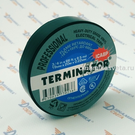 Лента изоляционная TERMINATOR IZ-1918G Standart (19мм/18м/0,13мм,универсальная,ЗЕЛЕНЫЙ) (1/10)