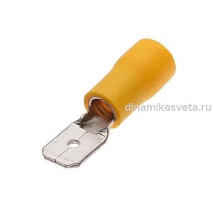 Разъем плоский ПАПА 6,3мм КВТ РПИ-П6,0-(6,3) с изоляцией/латунь/желтый (ПЭ10)